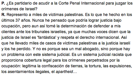 Que te quede claro: ningún líder palestino, ningún abogado, nadie, irá a ninguna Corte Internacional de Justicia para que se juzgue los crímenes de Israel, puesto que Israel también podría acudir a la misma sala y el conflicto se alargaría por siglos. ¿Acaso en una guerra hay santos?