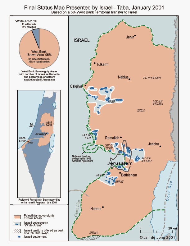 La Conferencia de Madrid marcó el inicio del futuro Estado Palestino. Tras ese primer encuentro tuvieron lugar los Acuerdos de Oslo en 1993 que establecieron cierta soberanía palestina por primera vez en la historia en ciertas partes de Judea y Samaria / Cisjordania. A cambio los palestinos se comprometían a renunciar a la violencia y con ello Israel a retirar sus tropas de Cisjordania. Las tropas jamás llegaron a retirarse debido a los continuos atentados contra israelíes. En 1995 los Acuerdos de Taba (Oslo II) otorgaron más competencias a la Autoridad Nacional Palestina en las zonas de Cisjordania acordadas en Oslo I. En el año 2000 en Camp David surgió la Iniciativa Clinton; Jerusalén, desconexión de territorios, y refugiados fue una combinación que se tradujo en un desastre total y tanto Israel como la Autoridad Nacional Palestina se negaron a ceder a las peticiones del otro.