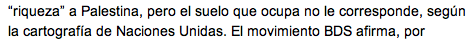 Además de antiisraelí BDS es antipalestino puesto que, y aun sabiendo este punto, todo aquello que pueda repercutir a la economía israelí o de las colonias judías en Judea y Samaria, repercute en buen grado a la economía palestina. Dicho de otro modo: si nos quedamos sin agua los palestinos también beberán arena.