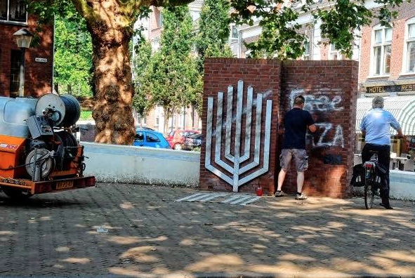 Yihadistas en Holanda ocultan la cara de la estatua de Ana Frank con una papel con la Shahada, profesión de fe islámica.