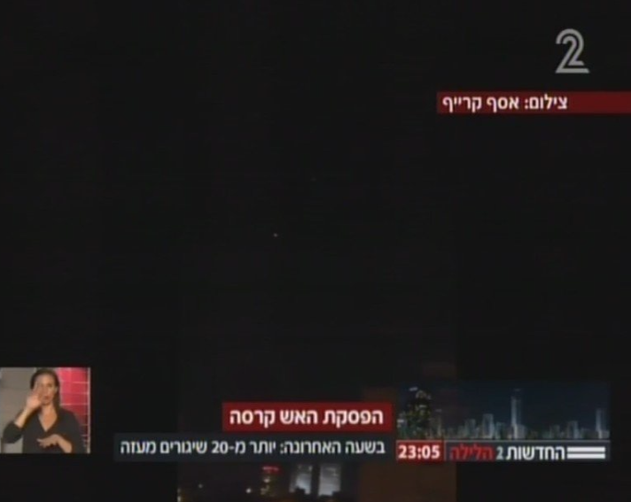 Secuencia filmada en el momento que Kipat Barzel intercepta un misil sobre Tel Aviv.