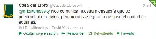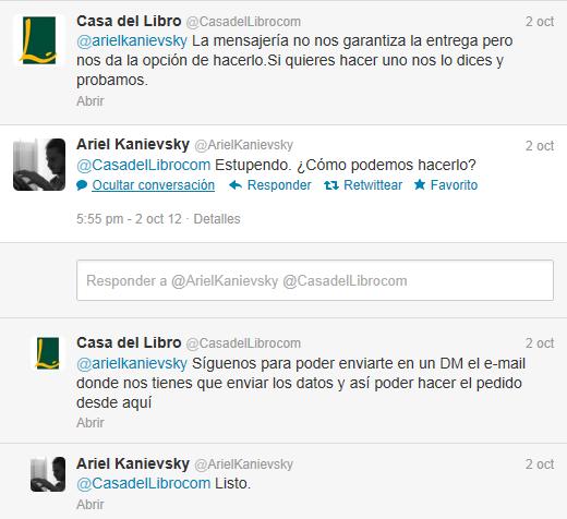 Aquí la conversación de Ariel con la Casa del Libro en su Twitter: