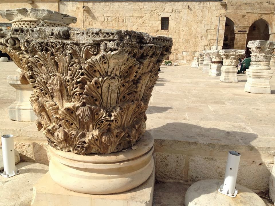 Arriba, en la explanada, aun quedan restos de algunas columnas de la época del Segundo Templo,