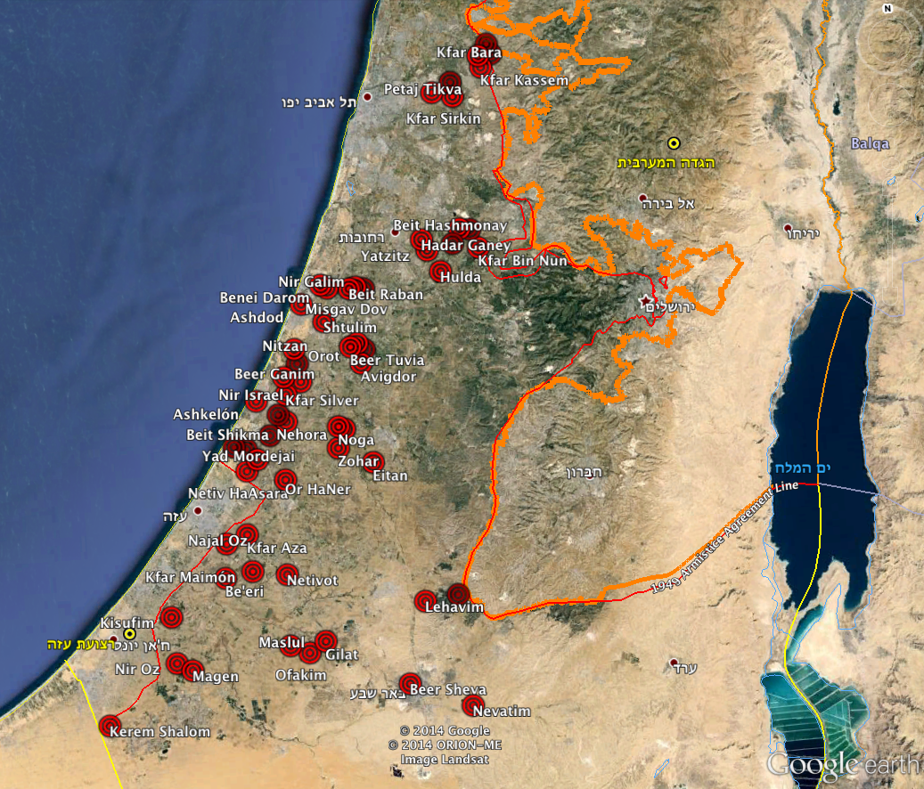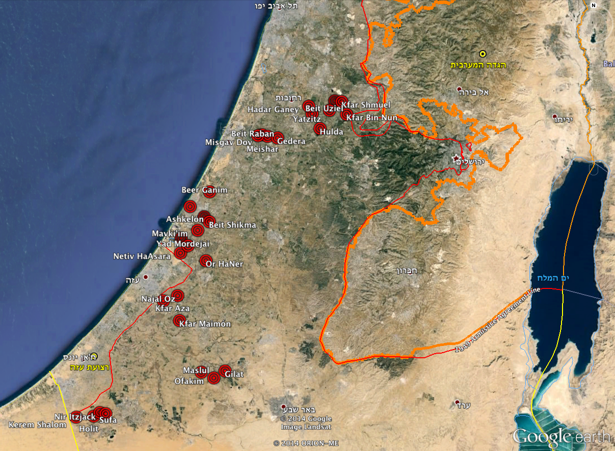 Localidades israelíes donde sonaron alarmas antiaéreas y del Tzeva Adom 20:03 – 00:00.